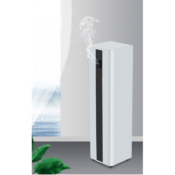 Scent diffuser machine adopts cold two-fluid atomization technology, the high-speed collision of cold air hits aroma oil into nanoscale mist, the machine sprays the mist out of the atomizer, the scent flows along through the air.
